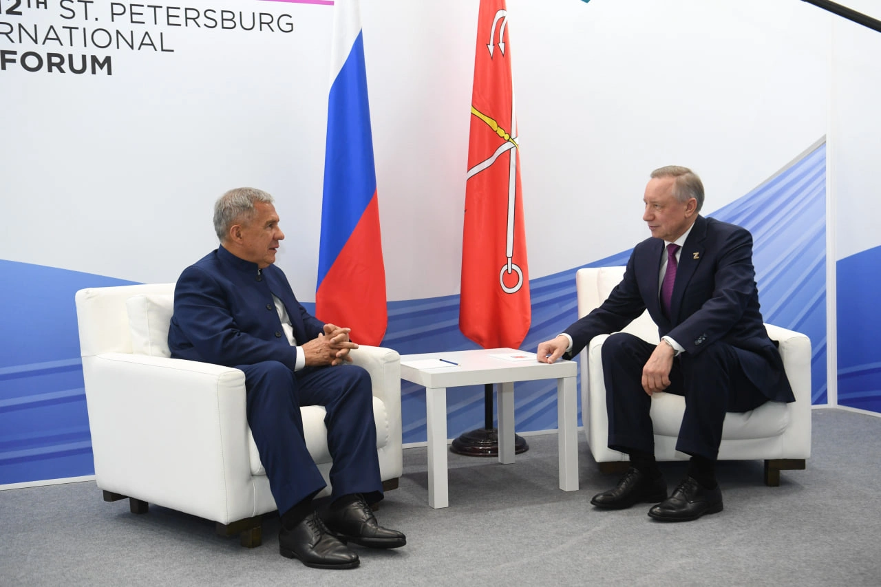 В рамках XIV Петербургского международного газового форума состоялась рабочая встреча Раиса Татарстана Рустама Минниханова и губернатора Санкт-Петербурга Александра Беглова. Об этом сообщили в пресс-службе Раиса РТ