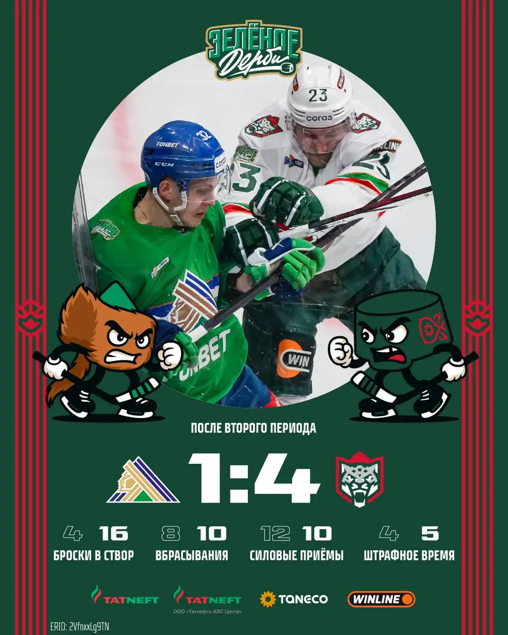 Казанская команда «Ак Барс» выиграла у «Салавата Юлаева» со счетом 4:1, отметив вторую победу подряд в «зеленых дерби» текущего сезона.