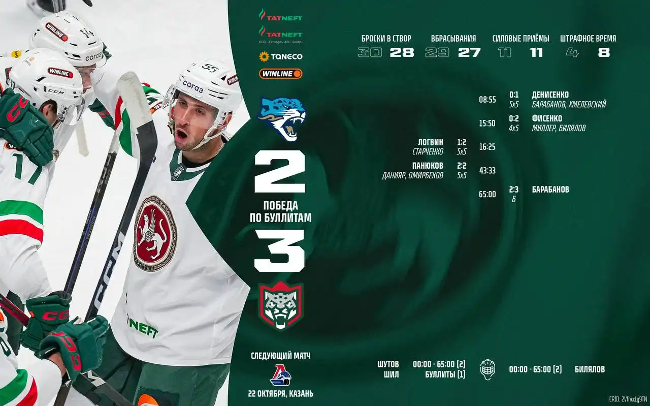 Казанский хоккейный клуб «Ак Барс» одержал седьмую победу подряд, одолев «Барыс» со счетом 3:2 в напряженном матче.