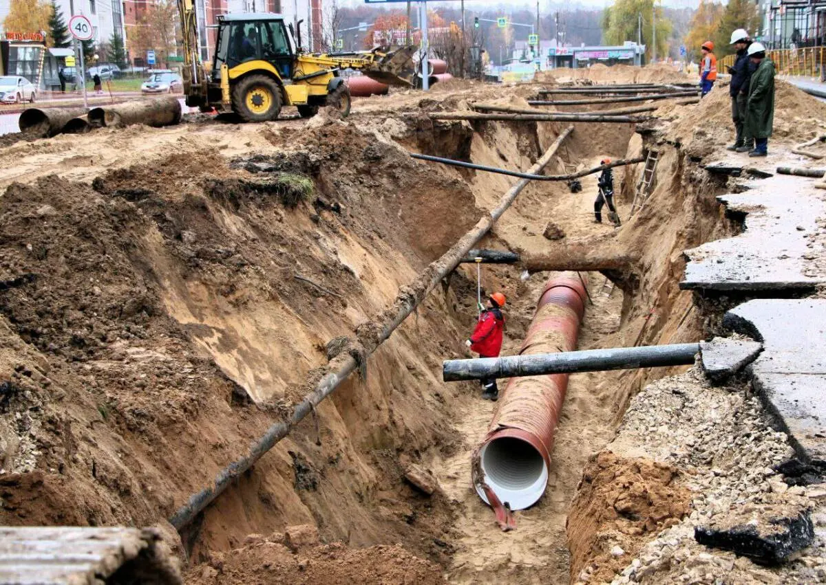 В ведомстве уточнили, что работы ведутся не только у дома №43а, где ранее образовались провалы, но и на всей протяжённости повреждённого коллектора.
