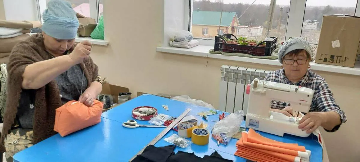Кроме того, в гуманитарных пунктах Верхнеуслонского района продолжается работа и по другим направлениям: волонтеры комплектуют сухие пайки, шьют одежду и плетут маскировочные сети.