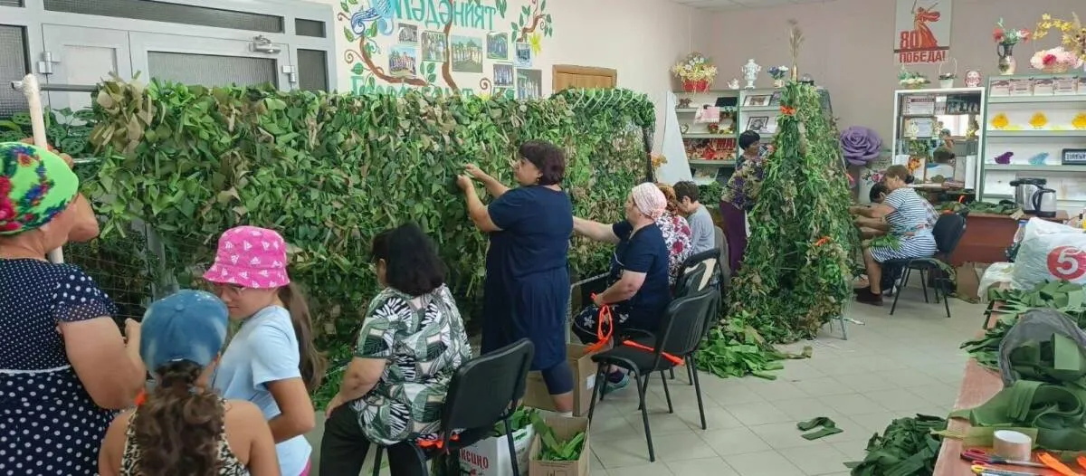 Волонтёры пожилого возраста продолжают изготавливать маскировочные сети для отправки на фронт. Особенно активна работа в селах Надеждино, Белкино, Татарское Ходяшево, Кряш-Серда, Кибячи, Пимери и других.