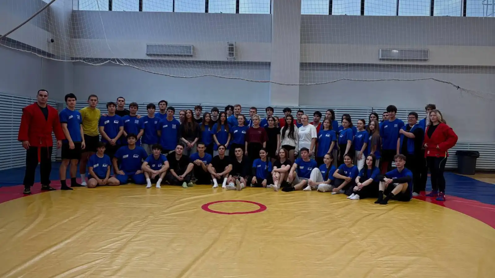 Мастер-класс провел кандидат мастера спорта по самбо и мастер спорта по борьбе на поясах Кирилл Кувшинов. Он начал с разминки и обучил участников основному приему в самбо — правильному падению.