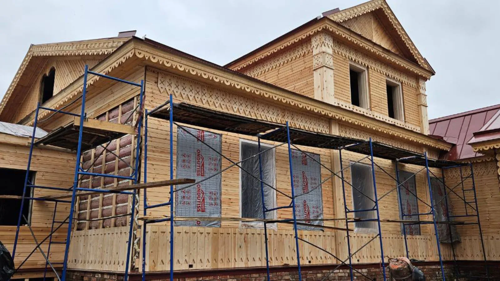 В старом здании площадью более 340 кв.м реставраторы провели масштабные работы: укрепили фундамент, частично восстановили сруб, смонтировали гидроизоляцию и проложили электросети. Также была восстановлена историческая кладка, обновлено чердачное перекрытие, отреставрированы деревянная обшивка и резной фасадный декор. В настоящее время специалисты завершают монтаж конструкций, облицовку фасада и внутреннюю отделку.
