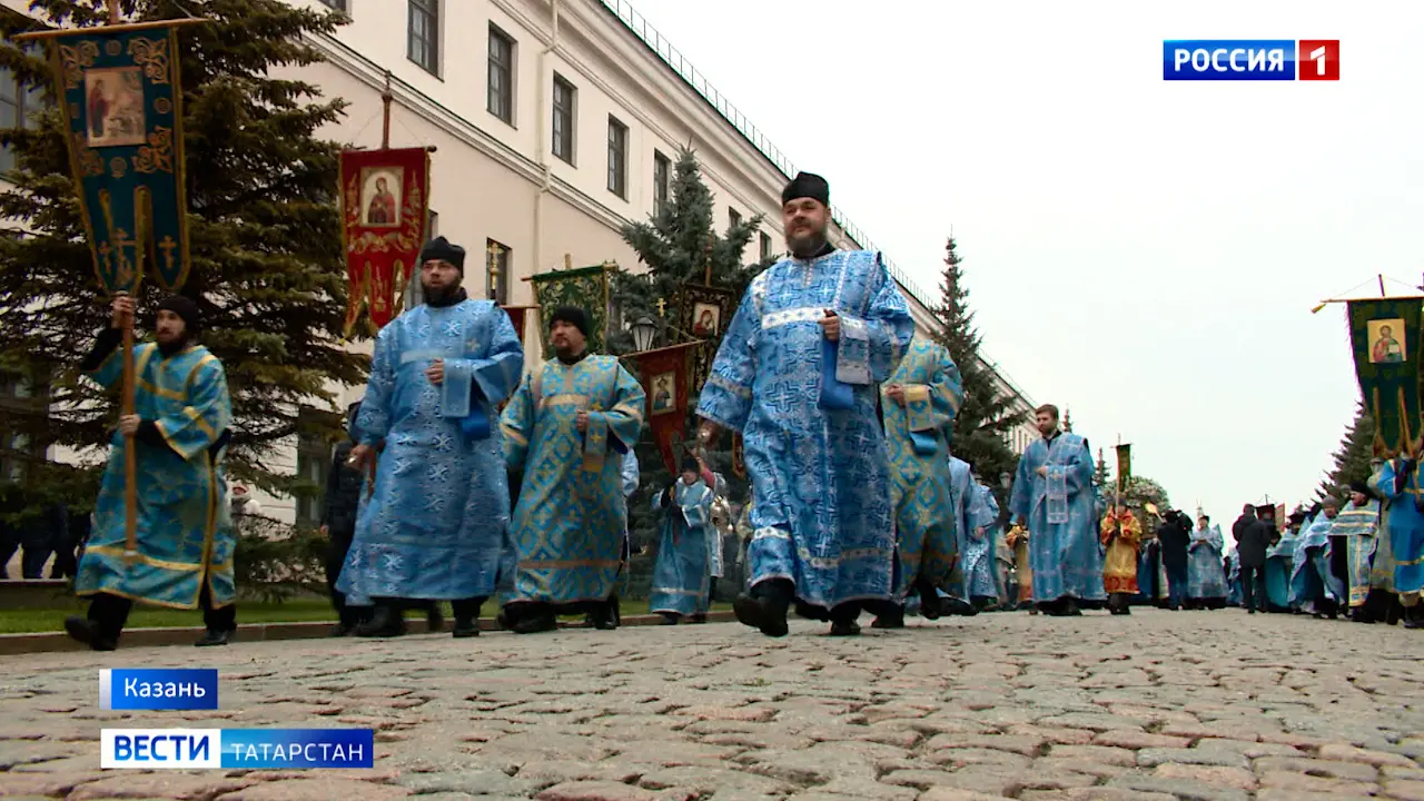 Важную роль в Победе над интервентами в семнадцатом веке сыграла почитаемая чудотворная Казанская икона Божьей Матери — именно с ней шло войско Кузьмы Минина и Дмитрия Пожарского освобождать Москву. 4 ноября традиционно считается и Днем Образа Богородицы. Тысячи верующих прошли сегодня крестным ходом с иконой от Благовещенского собора кремля до Казанского Богородицкого мужского монастыря. Виктория Владимирова присоединилась к шествию.