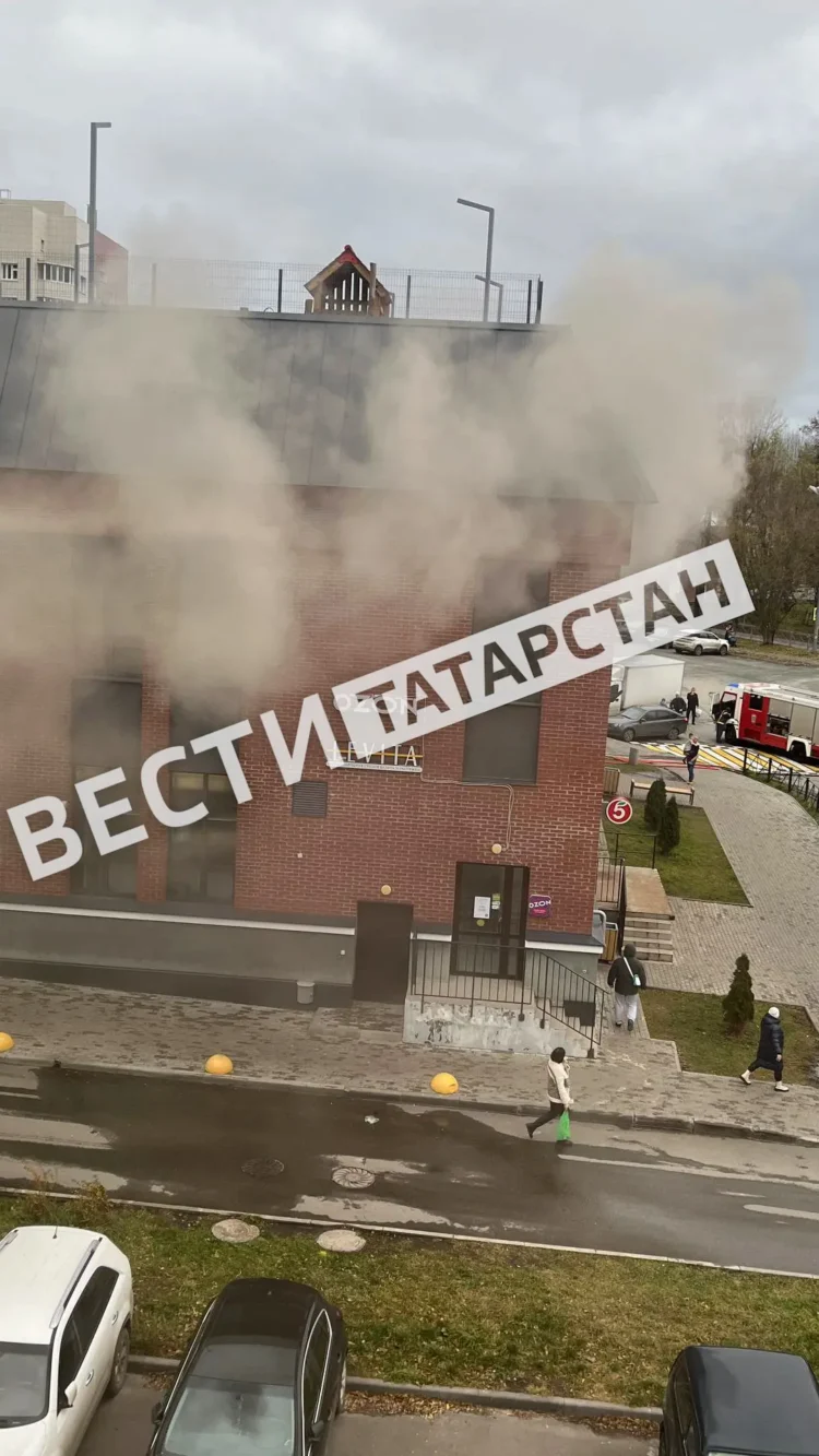 Прибывшие пожарные обнаружили очаг на втором этаже кирпичного здания и сильное задымление. Посетителей внутри не было. На месте работают пожарные.
