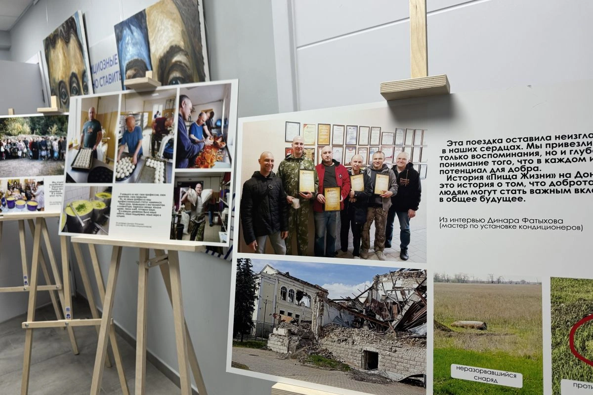 В основу выставки легли реальные истории волонтеров — как местных жителей Донбасса, так и добровольцев со всей России. Экспозиция демонстрирует их труд, риски и духовную поддержку, которую они оказывают людям в сложных условиях.