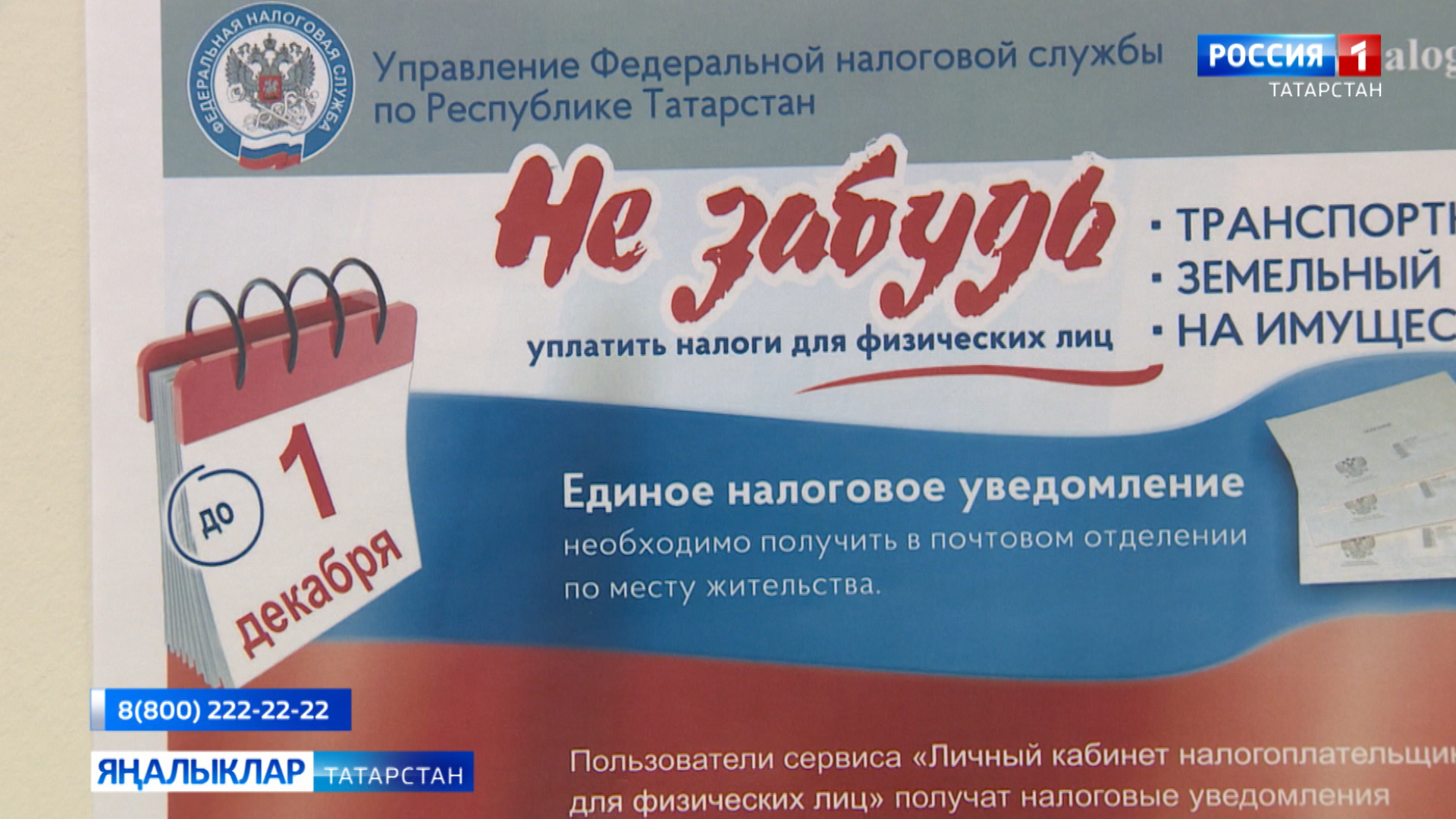 Беренче декабрь җитүгә нибары бер атна вакыт калып бара. Беренче декабрьдән дә соңга калмыйча республика халкы күчемсез милеккә, транспортка һәм җир салымнарын түләргә тиеш. Салым түләүченең “шәхси кабинеты” булганнарга, шулай ук Дәүләт хезмәт күрсәтүләре порталыннан файдаланучыларга, электрон хәбәрләр сентябрьдән үк җибәрелә башлады. Калганнарга хәбәр почта аша җиткерелде. Әгәр дә салым идарәсеннән хат килмәсә, яисә салым түләү турында электрон хәбәр булмаса, моны инспекциягә барып ачыкларга кирәк. Ә инде тулырак мәгълүматны, бердәм контактүзәгенең 8-800-222-22-22 телефоны буенча алырга мөмкин.