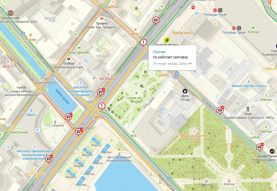 В центре Казани образовались пробки из-за неработающих светофоров.