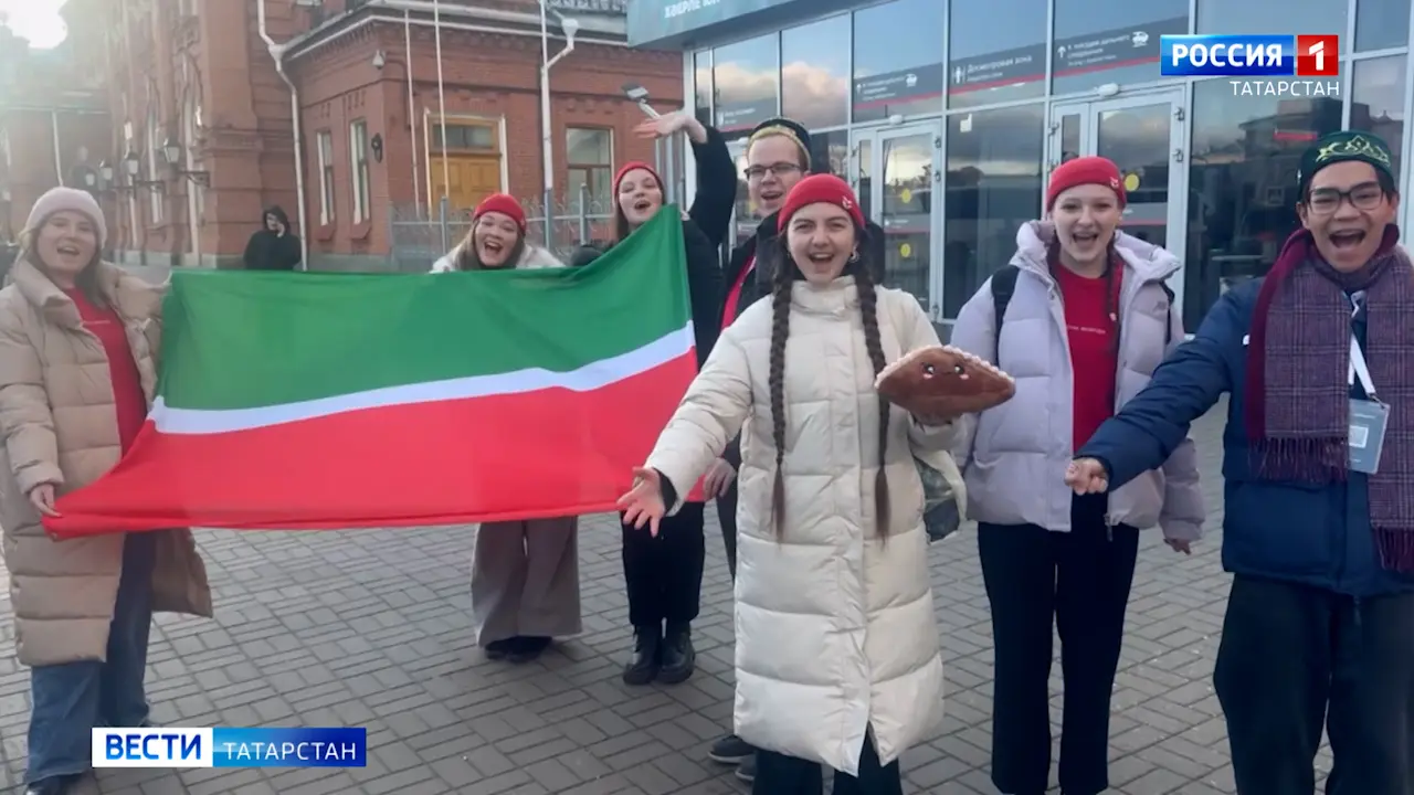 Участников всероссийской студенческой весны встретили волонтёры – с флагами Татарстана, национальными атрибутами и приветствиями на татарском языке. Впрочем, познакомиться с колоритом Татарстана у молодых людей будет возможность, но самое главное они представят свои номера на фестивале студенчества, который в этом году проводится в Казани.