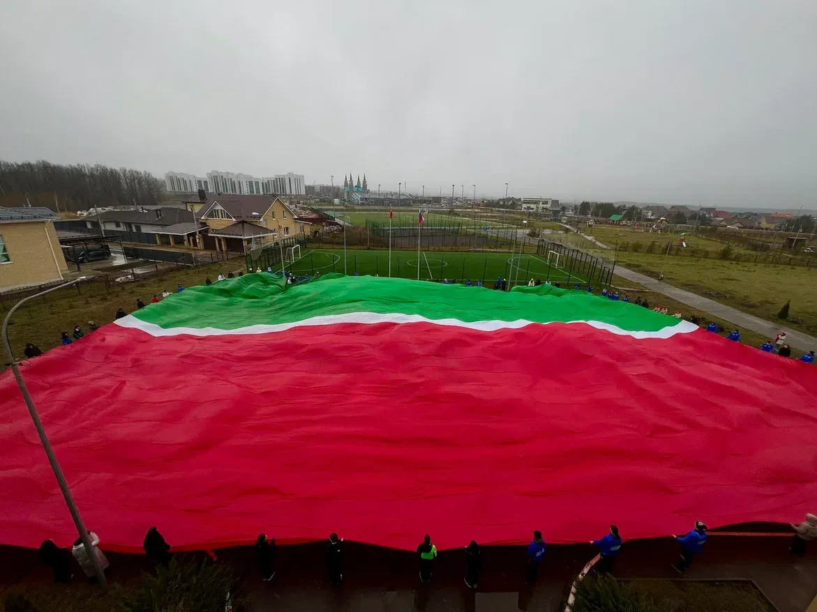 Организаторы акции, Татарстанское региональное отделение «Молодой Гвардии» и партия «Единая Россия», развернули флаг размером 50 на 25 метров. Завуч школы Ирина Федченко отметила, что мероприятие вызвало восторг у учеников и способствовало развитию любви и уважения к родине.