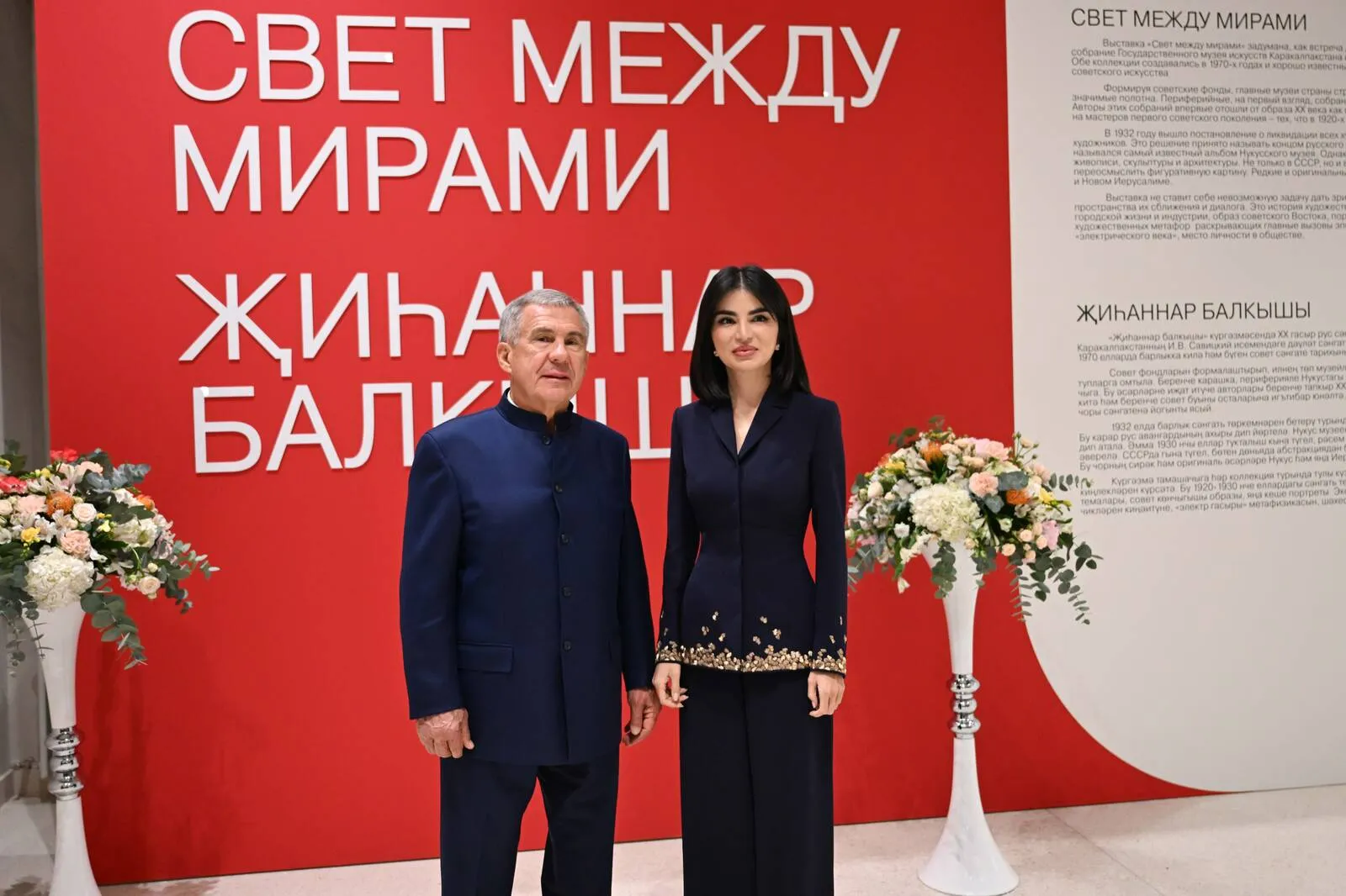 Раис Татарстана Рустам Минниханов и руководитель Администрации Президента Узбекистана Саида Мирзиёева посетили выставку картин «Свет между мирами» в Казанском Кремле.