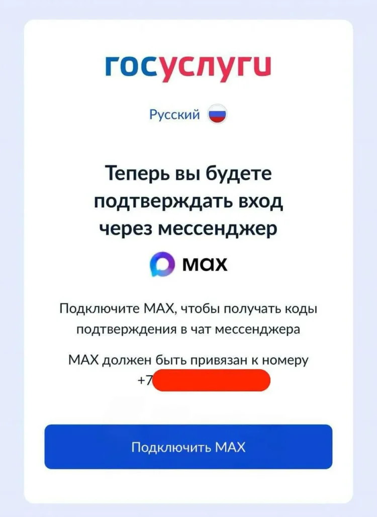 Сейчас пользователи при попытке входа на портал получают предложение подключить сервис Max для получения кодов подтверждения, без возможности отказаться от этой опции.