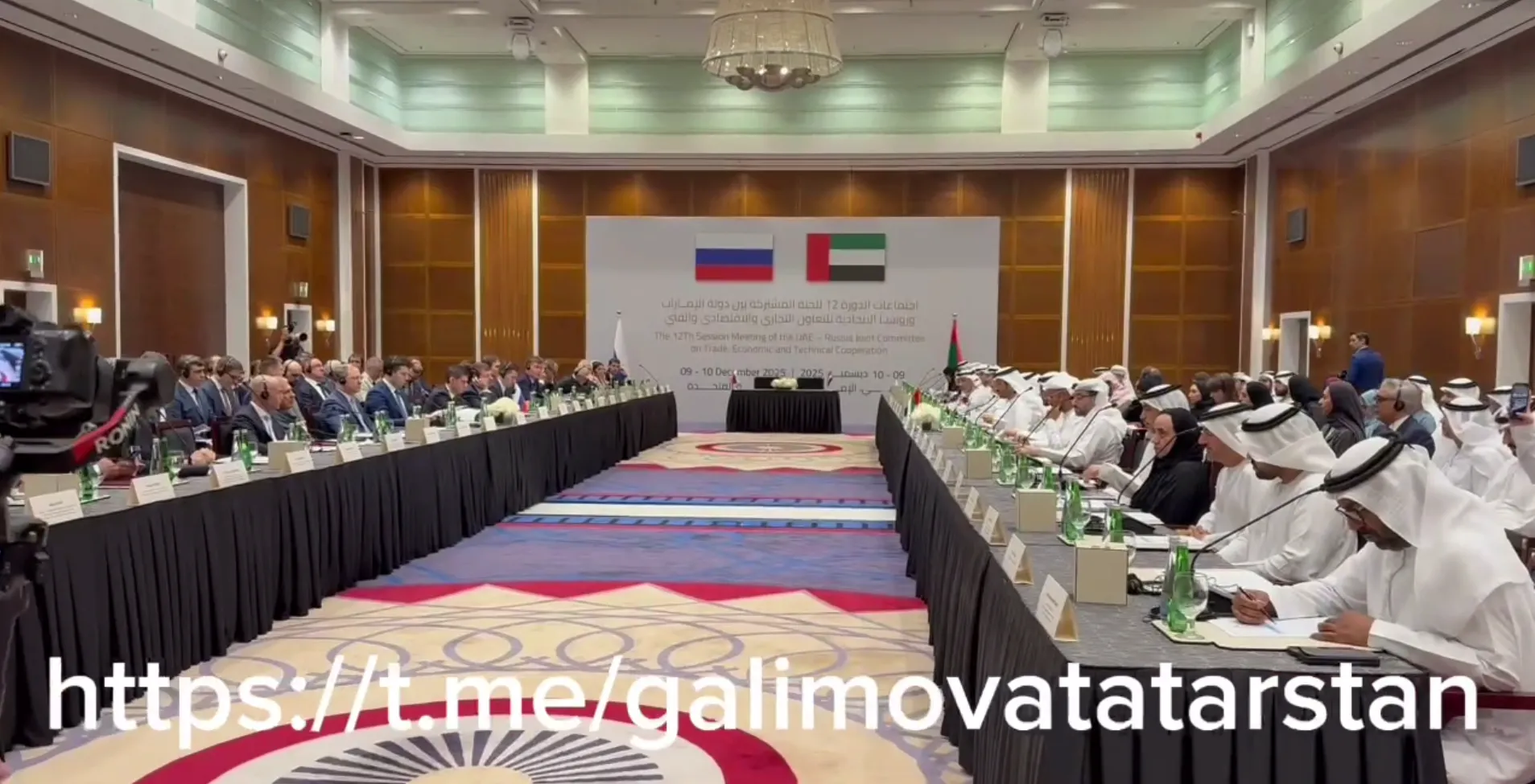 Члены татарстанской делегации выполняют функции переводчиков на заседании Межправительственной комиссии России и ОАЭ. Об этом сообщила руководитель пресс-службы Раиса РТ Лилия Галимова, опубликовав видео с мероприятия.