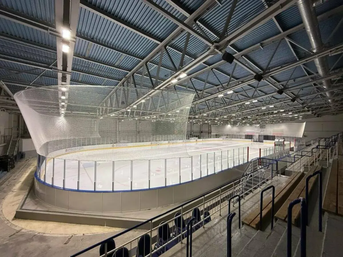 Во время работ специалисты демонтировали хоккейную коробку и боксы, укрепили опорную стенку, провели армирование подиумов боксов и стенки коллекторного канала. Также на арене установили новый хоккейный борт и современную станцию водоподготовки.