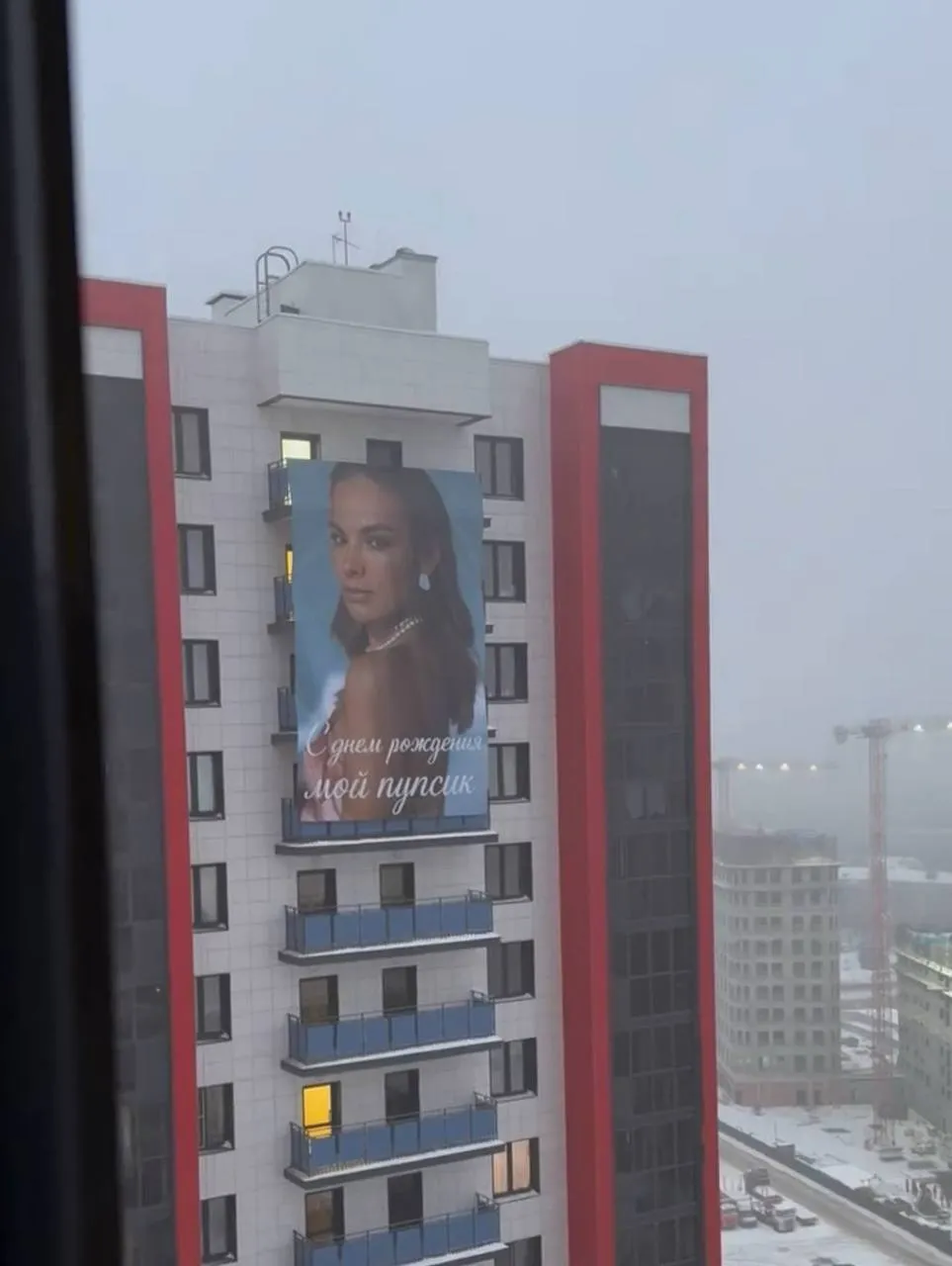 Мужчина разместил большой плакат с поздравлением на пожарных балконах своего дома. В управляющей компании отметили, что официального согласования на это действие не было, однако разрешили оставить баннер на несколько часов.