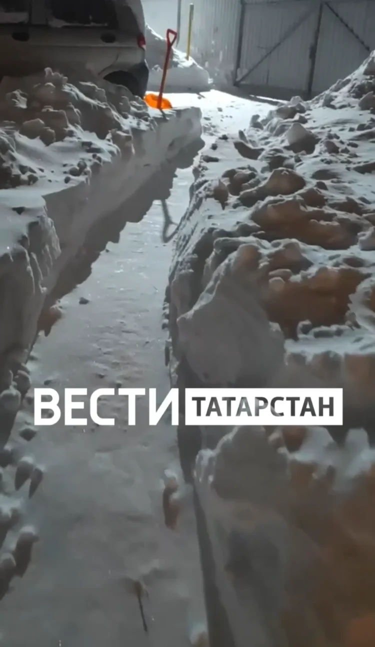 Жители Верхнего Услона дважды за день прокапывали вход к дому. Видео прислали в бот тг-канала «Вести Татарстан».