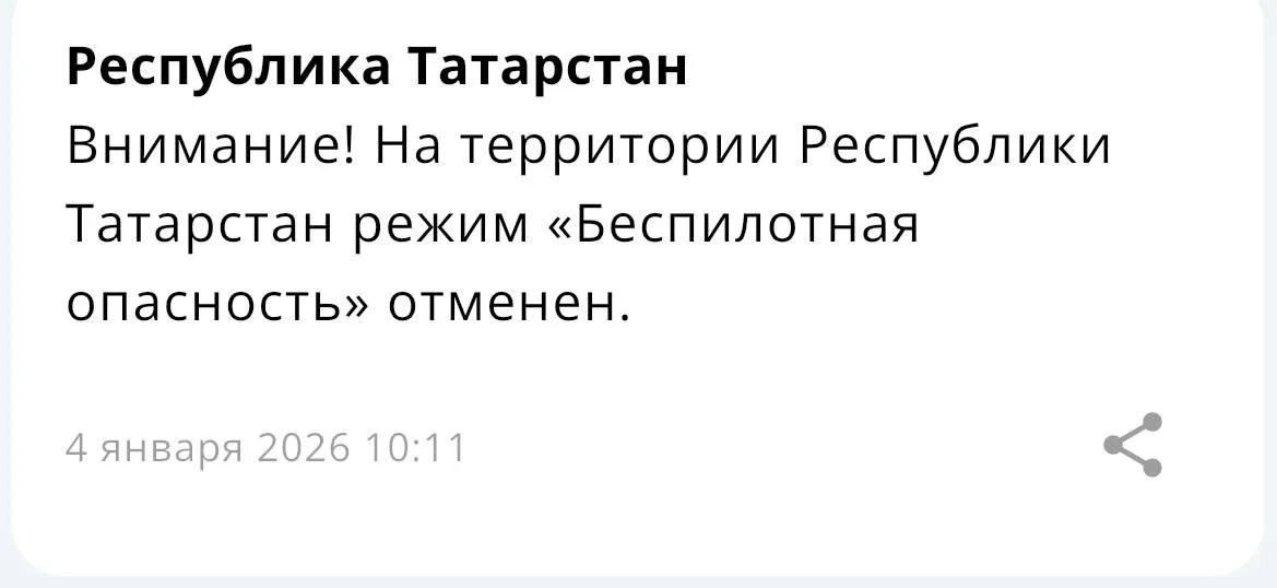 В Татарстане сняли режим беспилотной опасности, который действовал с 06:41 по московскому времени. Об этом МЧС России сообщило в своём мобильном приложении.