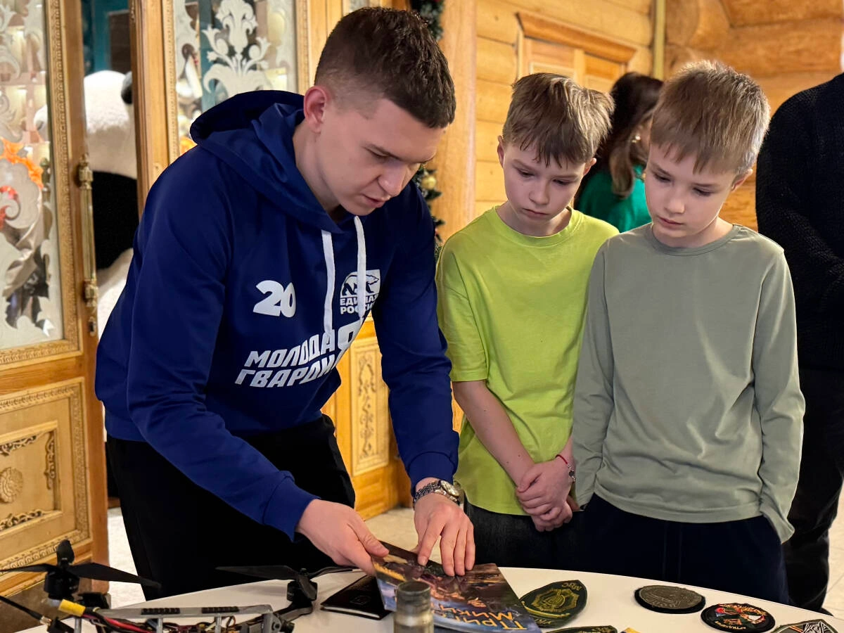 Активисты Татарстанского регионального отделения ВОО «Молодая Гвардия Единой России» приняли участие в новогоднем представлении для детей участников специальной военной операции, организовав музей СВО.