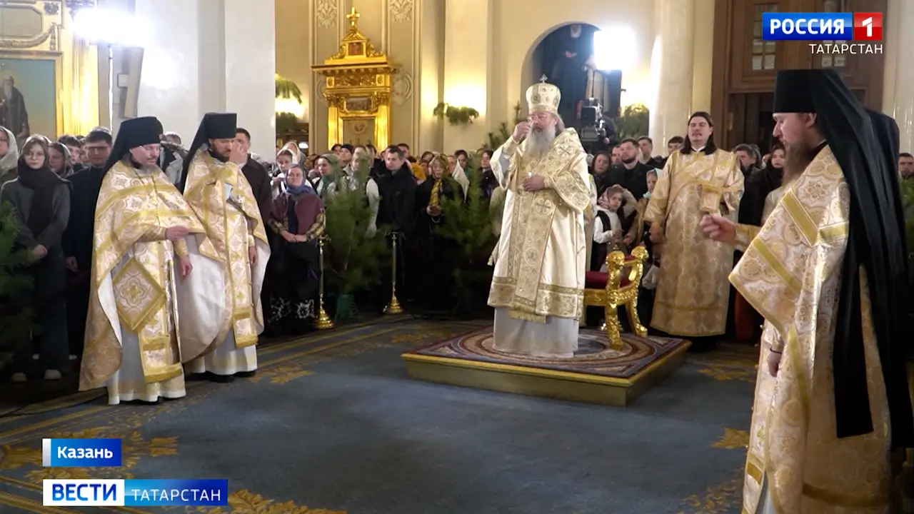 В Кафедральный Собор Казанской Иконы Божией Матери пришли сотни верующих со всей республики. Звучат первые аккорды хора и звон колоколов – начинается рождественская литургия — главное богослужение праздника. Люди подходят к алтарю и принимают святые дары. В храме царит атмосфера единства и света. Рождественскую службу проводит митрополит Казанский и Татарстанский – Кирилл.