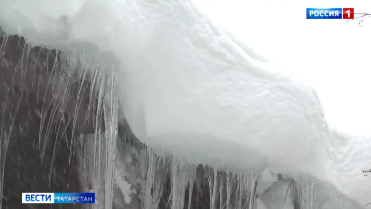 Смотреть не только под ноги, но и вверх стоит в эти дни жителям республики. После обильных снегопадов — за новогодние праздники в Казани выпало 64 процента нормы осадков — на домах появились снежные шапки. Что делать, если опасность над головой не устраняют? Об этом Вадим Вольский.