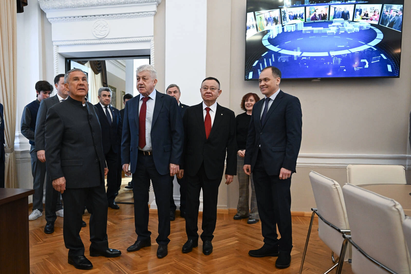 Затем делегации представили ход реализации проекта Центра управления процессами Республики Татарстан — системы инцидент-менеджмента, применяемой для управления эксплуатацией социальных объектов. Также гости посетили музей истории университета. Там Иреку Файзуллину показали форму времен его работы в студенческом строительном отряде.