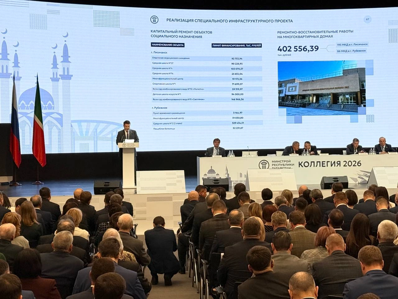 Специалисты Татарстана провели ремонтно-восстановительные работы в 13 социальных объектах и 281 многоквартирном доме Луганской Народной Республики. Об этом сообщил министр строительства, архитектуры и ЖКХ РТ Марат Айзатуллин на заседании итоговой коллегии ведомства.